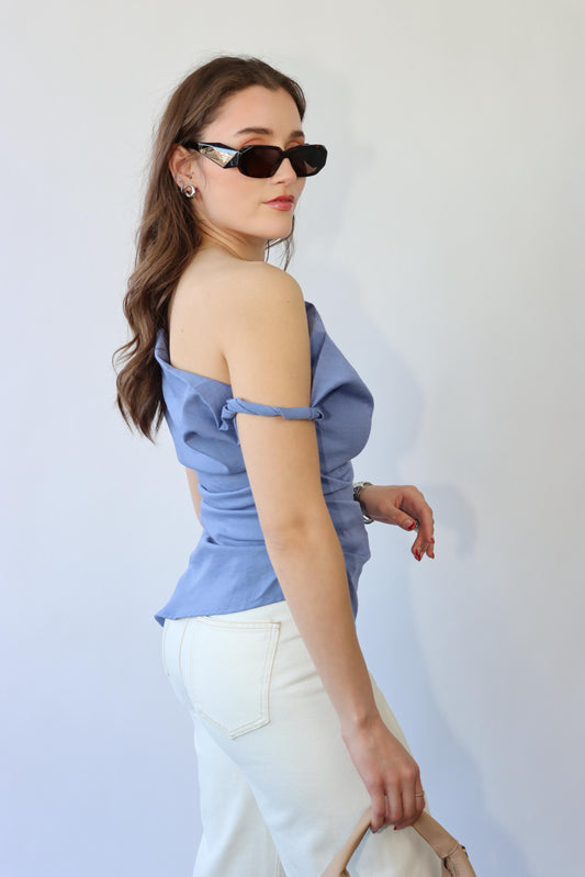 Greece Blue Asymmetrical Top